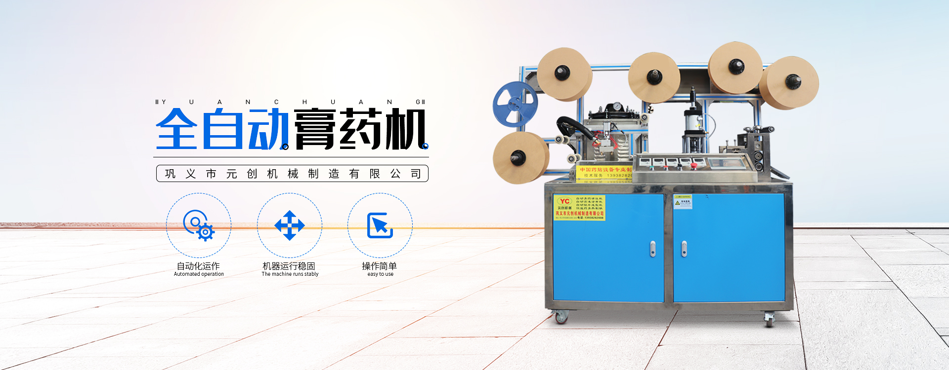 鞏義市元創機械制造有限公司是一家致力于中醫膏藥貼設備自動化的設計、生產與銷售的企業。膏藥機廠家憑借在機械、電氣、工藝、材料等方面的技術團隊,已成為一家能提供非標定制膏藥貼設備的制造商。